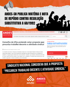 O Andes-SN publicou em seu site uma matéria e uma nota de repúdio, também enviada a todas as Seções Sindicais, denunciando a precarização do trabalho docente e da atividade sindical que a proposta de resolução substitutiva a 60/1992 do CEPE da Ufes representa.