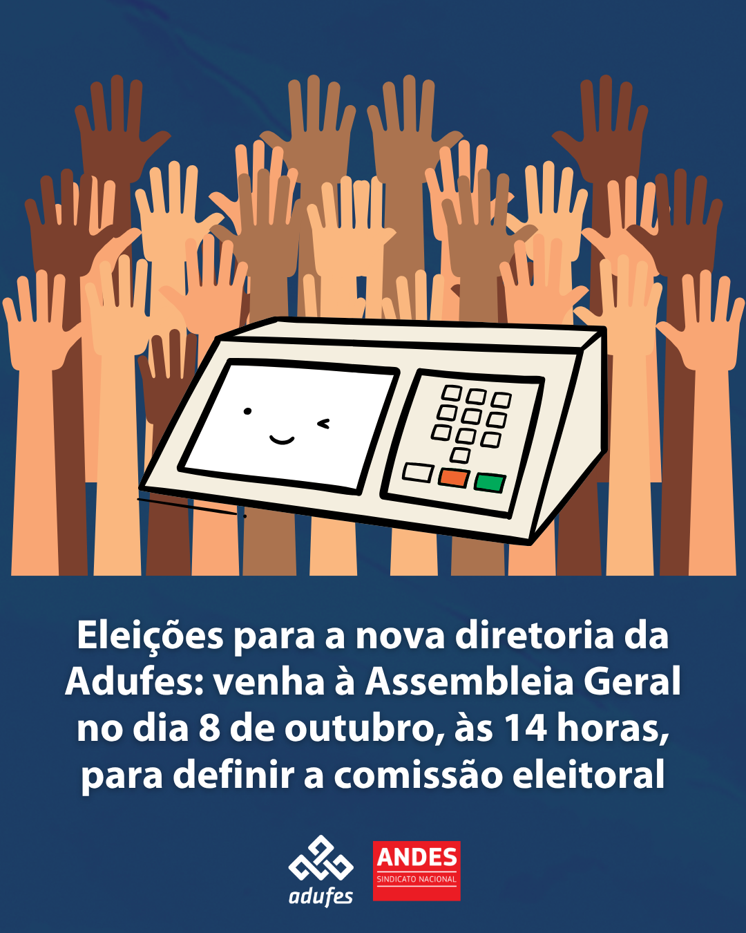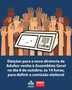 Eleições da Adufes: venha à Assembleia Geral no dia 8 de outubro, às 14 horas, para definir a comissão eleitoral